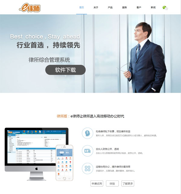 e律師技術(shù)團隊開發(fā)的律師事務(wù)辦公管理系統(tǒng),與眾多律師事務(wù)所共同協(xié)作,在各位律師精英的大力支持下,經(jīng)一年多的試運營,律師事務(wù)辦公管理系統(tǒng)命名為“e律師”律所綜合管理系統(tǒng),同時,e律師官網(wǎng)正式上線,網(wǎng)址:m.chinahxbw.com。
