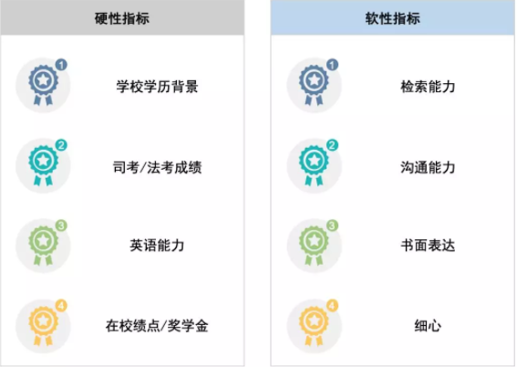 進入新手區的標準很簡單,即通過律師事務所的篩選、進入律所實習并留用。在律所選拔方面,會包含硬性標準和軟性標準,典型的硬性指標有學校學歷背景、是否通過司考/法考、英語能力、在校績點/獎學金等。